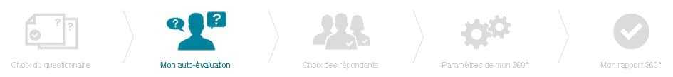 En 5 étapes , vous démarrez votre 360° feedback, guidé par le fil d’Ariane de votre espace.